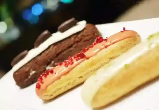 直接用Eclair做店名,当然是闪电泡芙做主打,柜台里一溜排放整齐的闪电泡芙,造型各异,色彩缤纷,看看都心生欢喜。每一个闪电泡芙个头小小的,内馅香浓顺滑也不过甜,泡芙皮是偏软的那种,软软的一口下去奶香四溢。