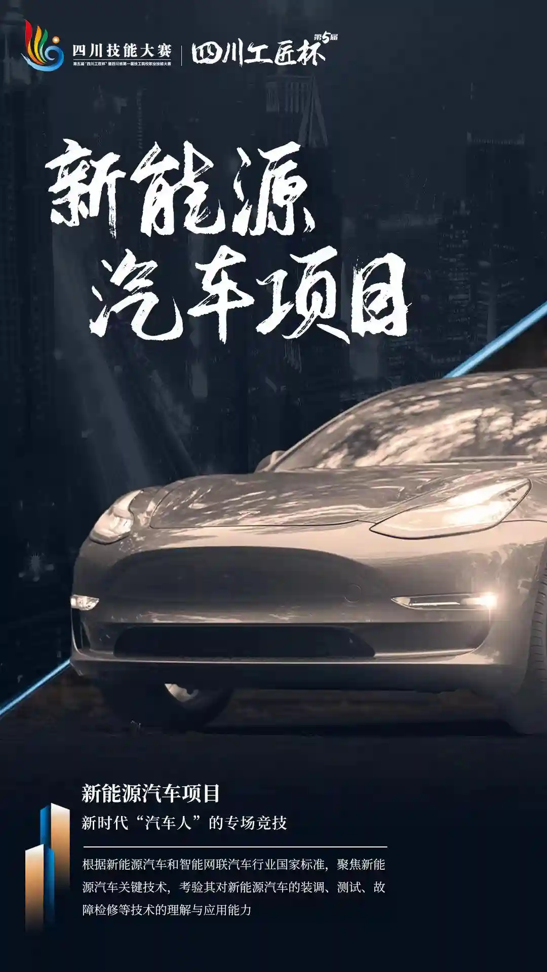 新能源汽车项目是根据新能源汽车和智能网联汽车行业国家标准,对接中华人民共和国职业技能大赛新能源汽车智能化技术和汽车技术项目要求,聚焦新能源汽车关键技术,考察选手对新能源汽车的装调、测试、故障检修等技术的理解与应用能力。