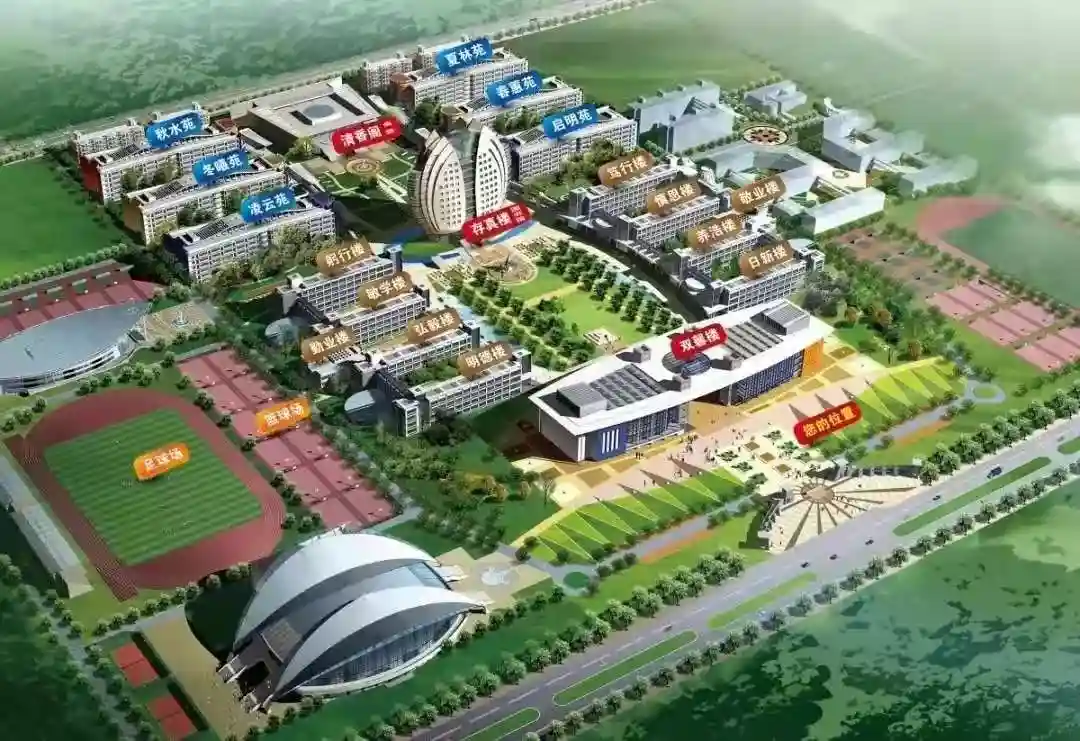 学校规划占地面积约21万平方米,合313市亩,建筑面积13万平方米。从学校正门进去是一个大广场,广场左侧为教学区,建有办公楼(敬业楼)、3栋教学楼(明德楼、笃学楼、致远楼);正对广场为学校图书馆、校史馆;图书馆右侧为实验楼、音体中心;校园后方为生活区,左侧及中央主要为餐厅、5栋学生公寓、学生运动场,后方右侧体育场。