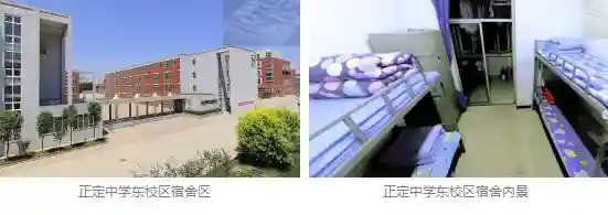 (1)住宿条件:正定中学东校区有5栋学生宿舍,宿舍为8人间,有独立洗漱间、阳台、电扇、空调、橱柜等。