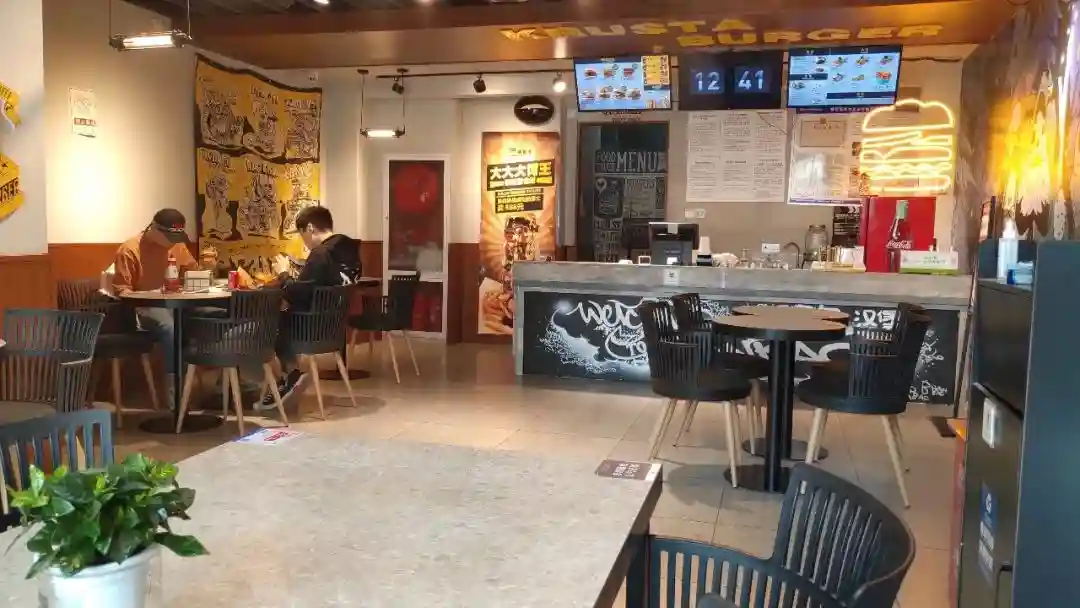 汉堡店名叫酷食塔,一个连锁品牌,就开在万象城停车场出入口附近。如果不开车也不在附近上班,那么这家汉堡店确实不太容易被发现。