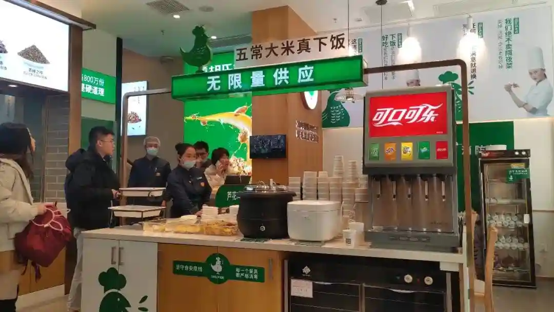 除了后厨的变化,自助区也是亮点了,3元一位,包括水果,小食品,碳酸饮料以及大米饭。