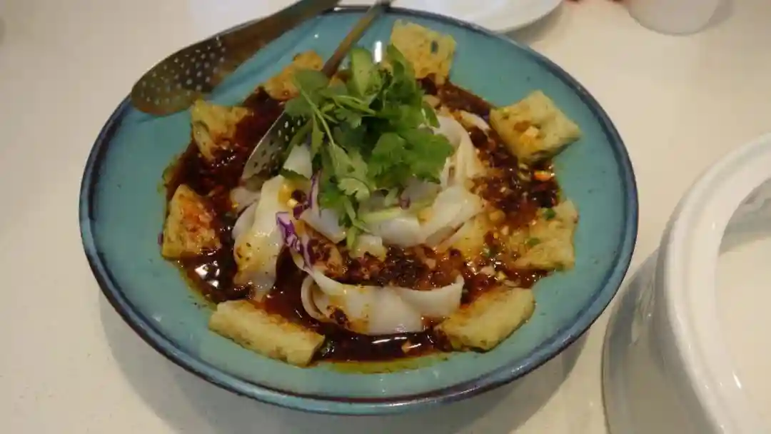 凉皮,分量不小,看起来挺辣,实际上是微辣。