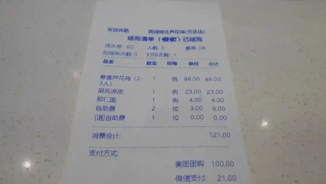 最后一共消费121元,配合代金券可以优惠一些,人均60左右应该是可以吃下来的,前提是不点其他乱七八糟的东西,哈哈。总体来说,这个品牌在升级之后,人均肯定还是有上浮的,但体验也跟着往上走了一些。
