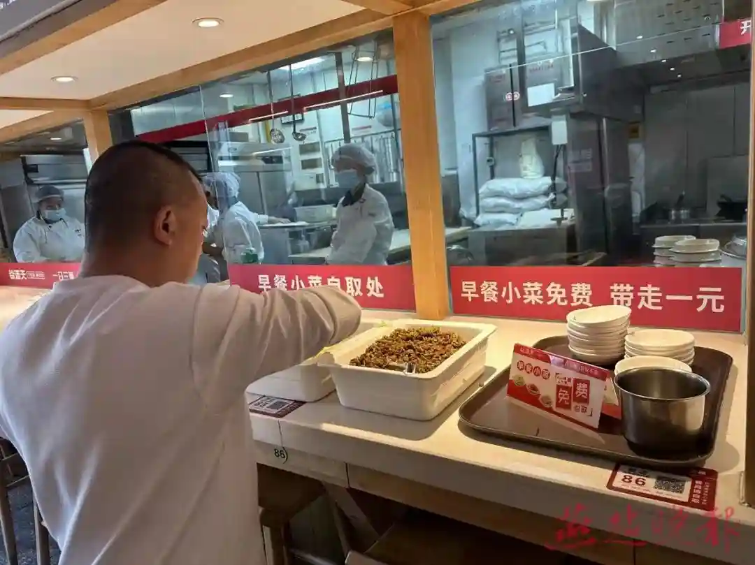 不少早餐店为顾客准备了免费小菜