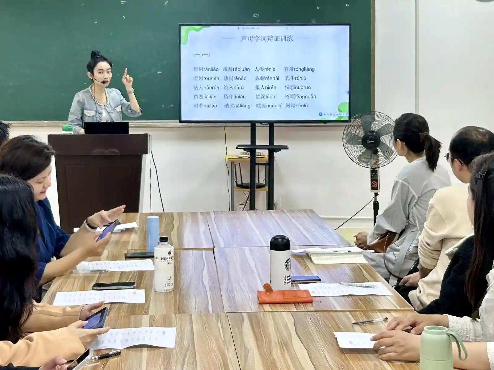 在青年夜校的表达力课程上,老师带领学员进行声母字词辩证训练。本报记者杜正蓝摄