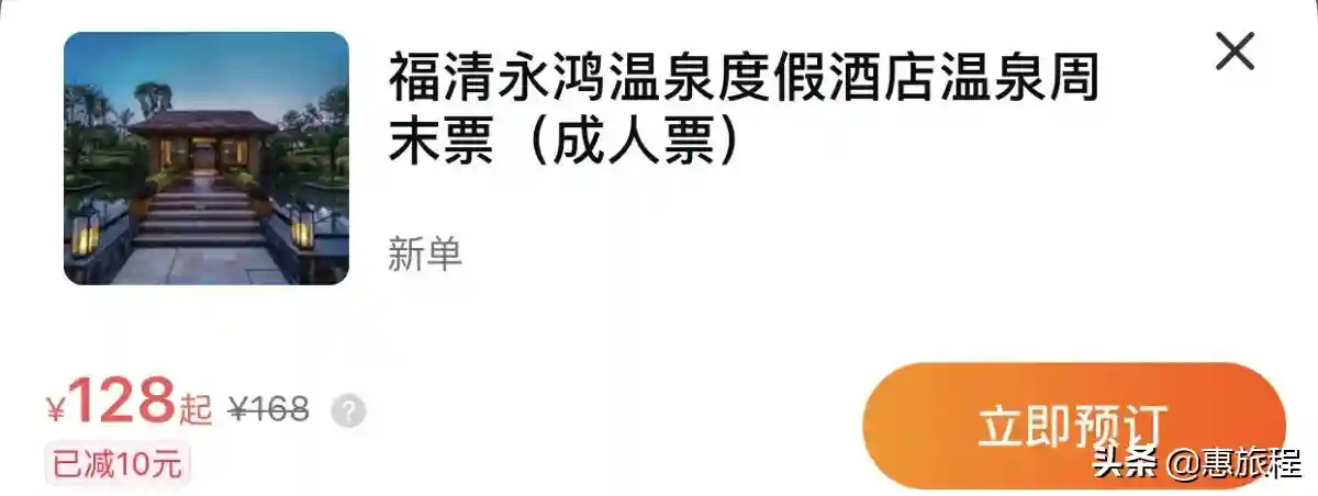 在其他酒店订购平台上,福清永鸿温泉度假酒店高级房/豪华房套餐单晚标价¥485;单人温泉¥128起、2大1小动物世界¥333起