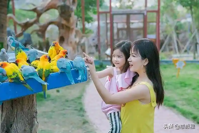 鹦鹉园里汇聚了凤头鹦鹉、折衷鹦鹉、金太阳鹦鹉等上百只鹦鹉…可以进入园区内与它们零距离互动喔~