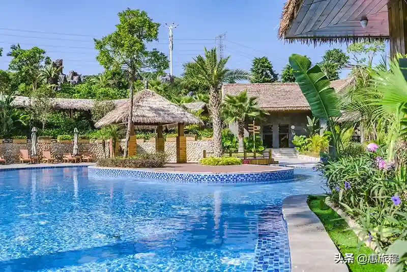 走进温泉谷仿佛置身于东南亚,随处可见高大繁茂的热带棕榈树和圆顶茅屋;