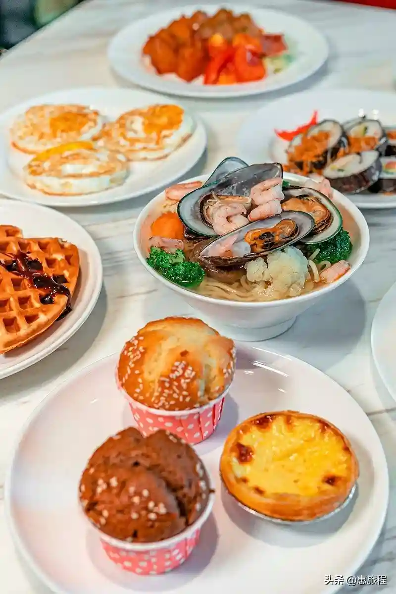 自助早餐相当丰富!中式汤面、蒸点,日式寿司,美味甜点、新鲜沙拉水果等应有尽有;