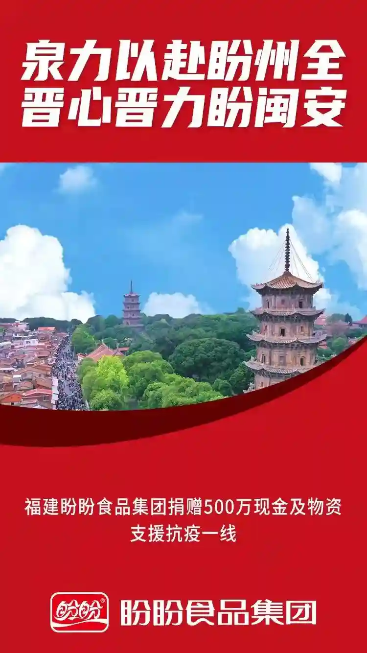 盼盼食品捐赠500多万元现金及物资。面对吉林省疫情防控的严峻形势,特步集团紧急驰援、奉献爱心,通过中国志愿服务联合会、中国志愿服务基金会向吉林省捐赠价值1000万元的御寒物资,鼎力支持中宣部、中央文明办在吉林省重点防疫区域开展“志愿服务关爱行动”。