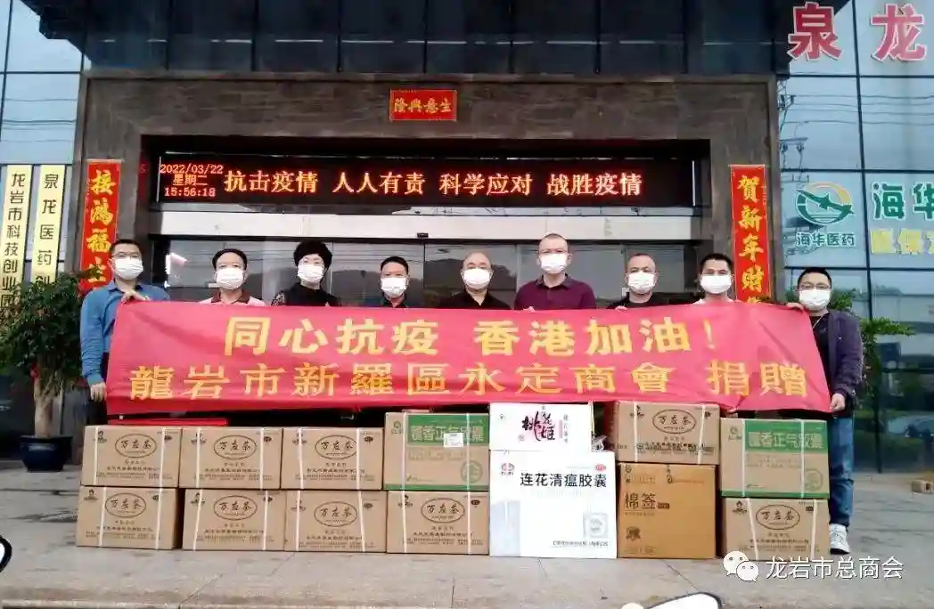 近日,龙岩市新罗区永定商会积极响应党中央关于支持香港抗疫的号召,积极发动会员捐款,共46名会员筹资2万6千元购买万应茶、莲花清瘟胶囊、藿香正气胶囊、一次性使用防护口罩、棉签等价值抗疫紧缺物资,并于3月22日将物资发往香港地区。