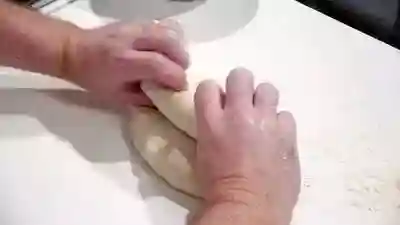 用手把面团拉成一个并不成形状的样子
