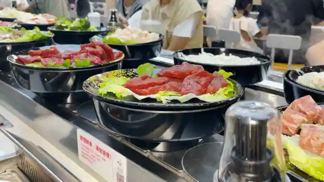 传送带每走一圈,都会突然有新的菜品出现在眼前。奋战了两个小时,从应接不暇的锡纸海鲜到数不清的烤肉,现在又能看的小食糕点的身影。