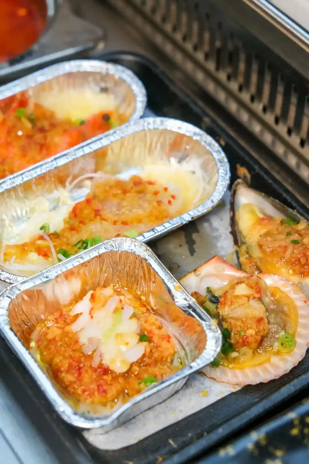 还有扇贝和青口,坐在出餐口的好处就是,一出餐,就能疯狂收割海鲜。