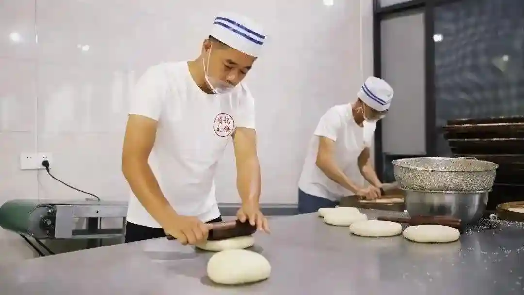 现在礼饼已不多见,一些传统的老店还在坚持着制作,手工礼饼带着手艺人的情感,是机器批量生产的流水线月饼不可比拟的。①学朝礼饼