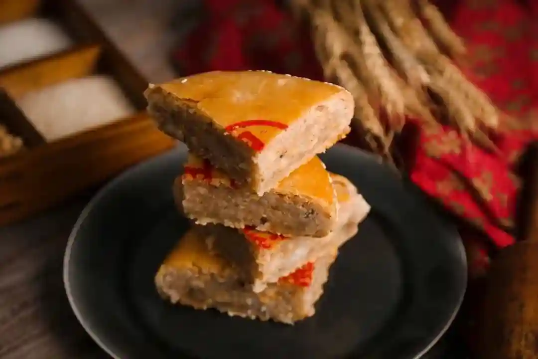 礼饼的做法相当考究,要将面粉、猪油混合后擀制摊平做皮,包入肥肉、白糖、花生、瓜仁、麻芝、冬瓜糖、葱花以及时令果仁等做馅,一应俱全。