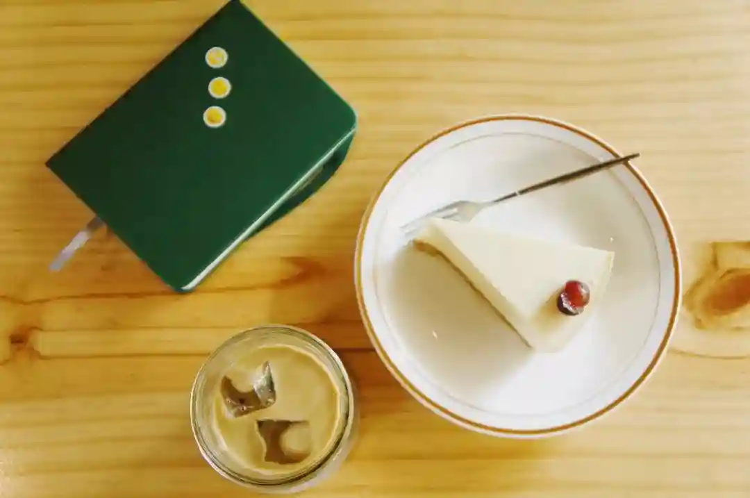 冰拿铁搭配店内自制的酸奶冻芝士,一口接着一口像嚼太妃糖。