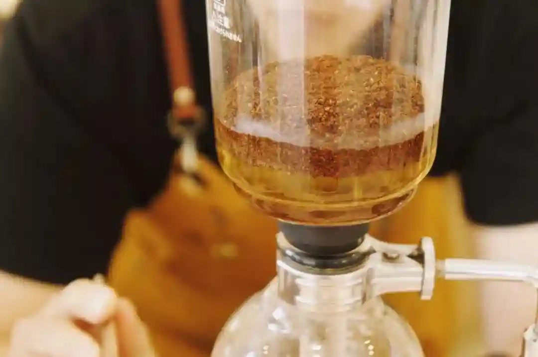 随着控温壶流出一圈圈稳定的水流,咖啡粉像打着哈欠似的冒着泡升高,琥珀色落向底壶。