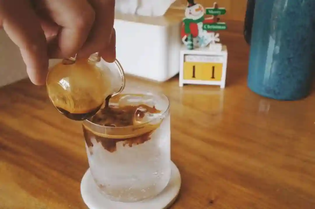 咖啡汽水很大杯,汤力水冒着泡推着冰块,把浓缩推出好看的波纹。