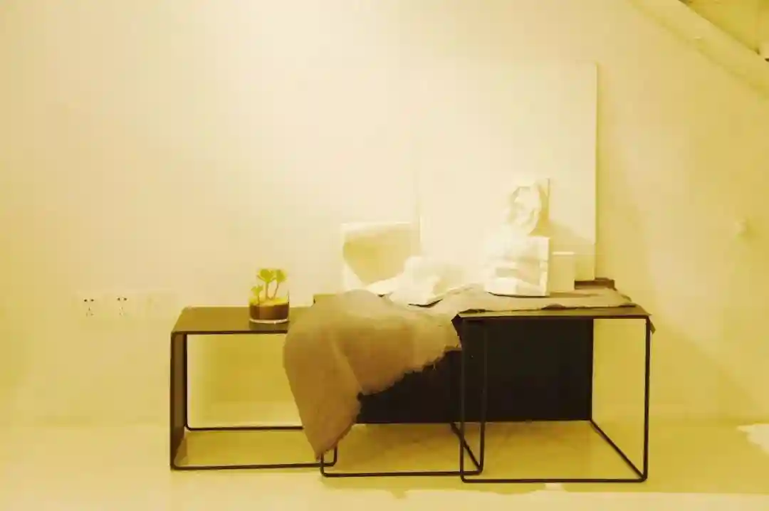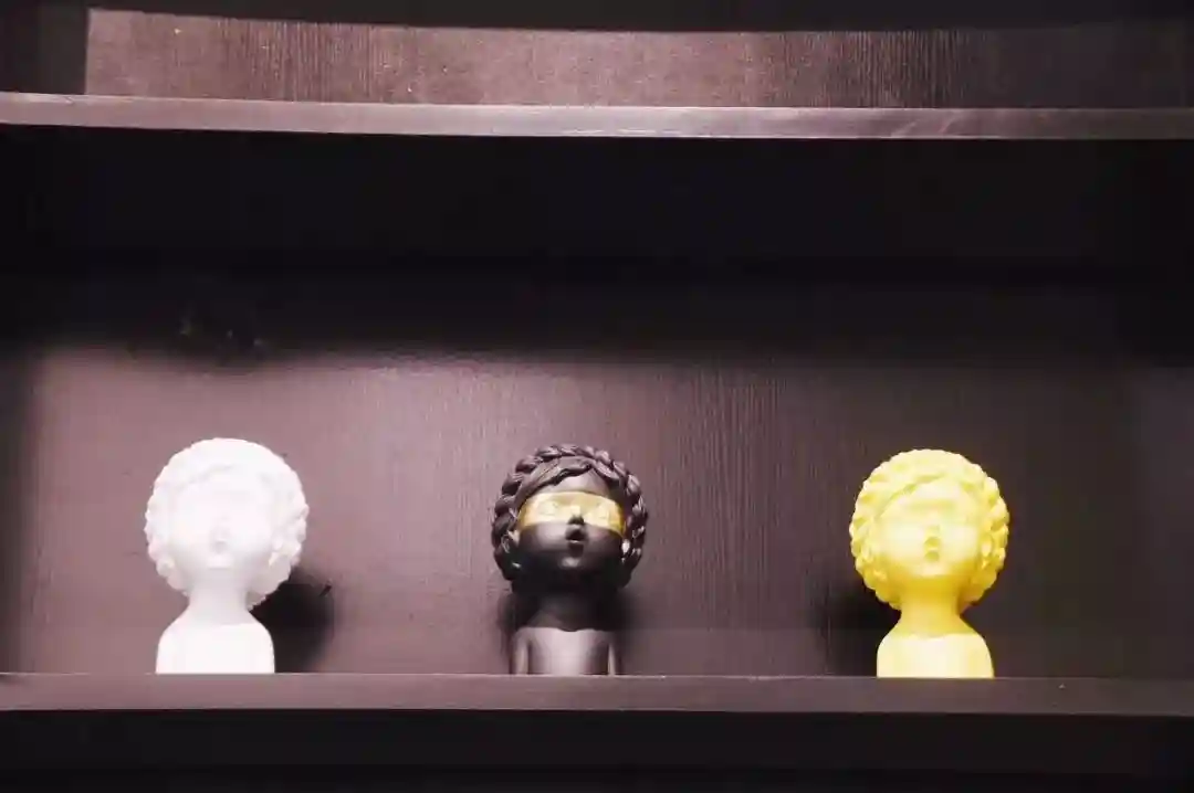 站在吧台边往里看,线条凌厉的金属家具整齐地挨着白墙。角落里摆着不规则形状的石膏像,在柔和的灯光下,自顾自静谧着。