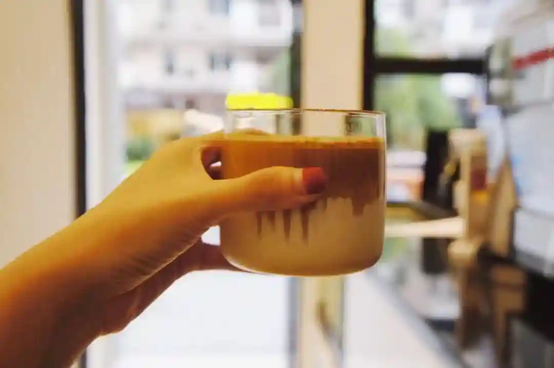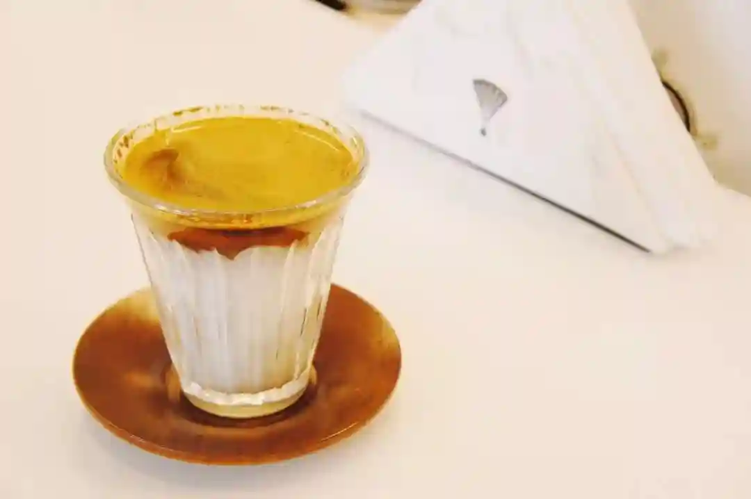 点了杯脏咖啡(Dirty),要大口快速喝完。巧克力和坚果调性的浓缩在牛奶上懒懒的趴着,混着可可粉,就像喝一颗无糖的榛子巧克力,酸苦平衡有回甘。