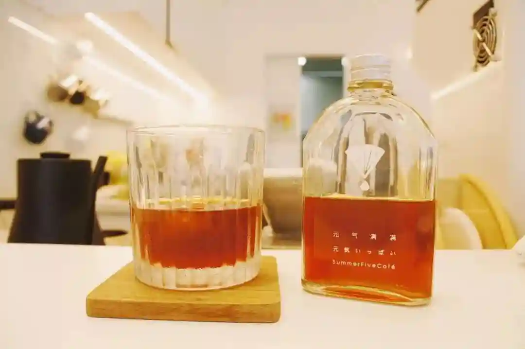 夏天可以来试试冰镇咖啡,三支不同风味的豆子制成的咖啡液乖乖住进冰箱,冷藏二十四小时后,能喝出淡淡的酒香。