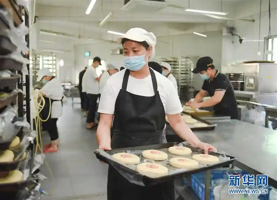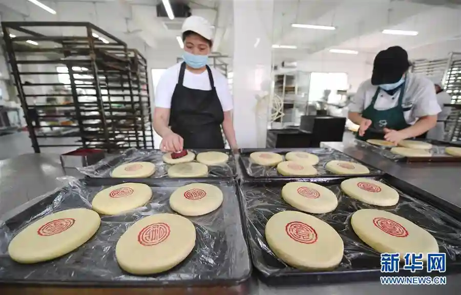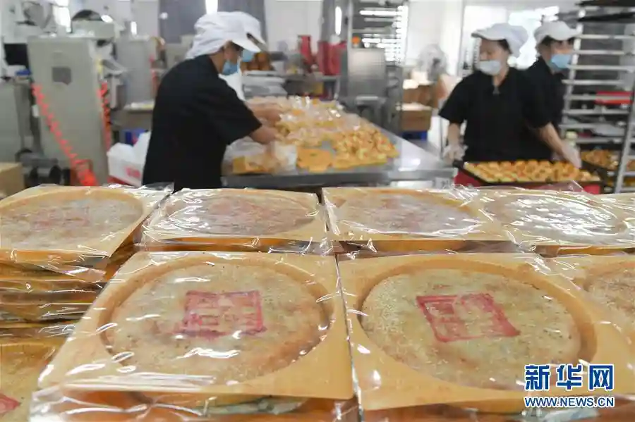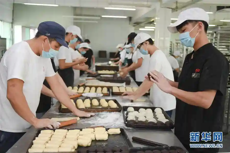 9月25日,在福州老字号糕点企业百饼园的加工车间,师傅将改良创新的馅料包入福州传统糕点——礼饼中。今年以来,受疫情影响,福州市不少传统糕点企业面临较大生存压力,产销一度低迷。复工复产以来,企业积极调整生产和销售模式,研发新馅料、创新传统糕点口感,同时进驻电商平台,满足群众多样化需求。中秋节前,福州传统糕点市场迎来今年首个销售旺季,企业压力逐渐化解。新华社记者宋为伟摄