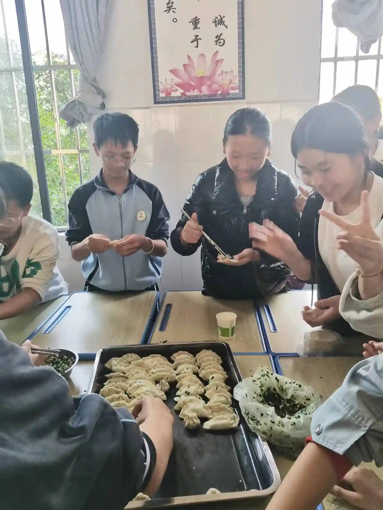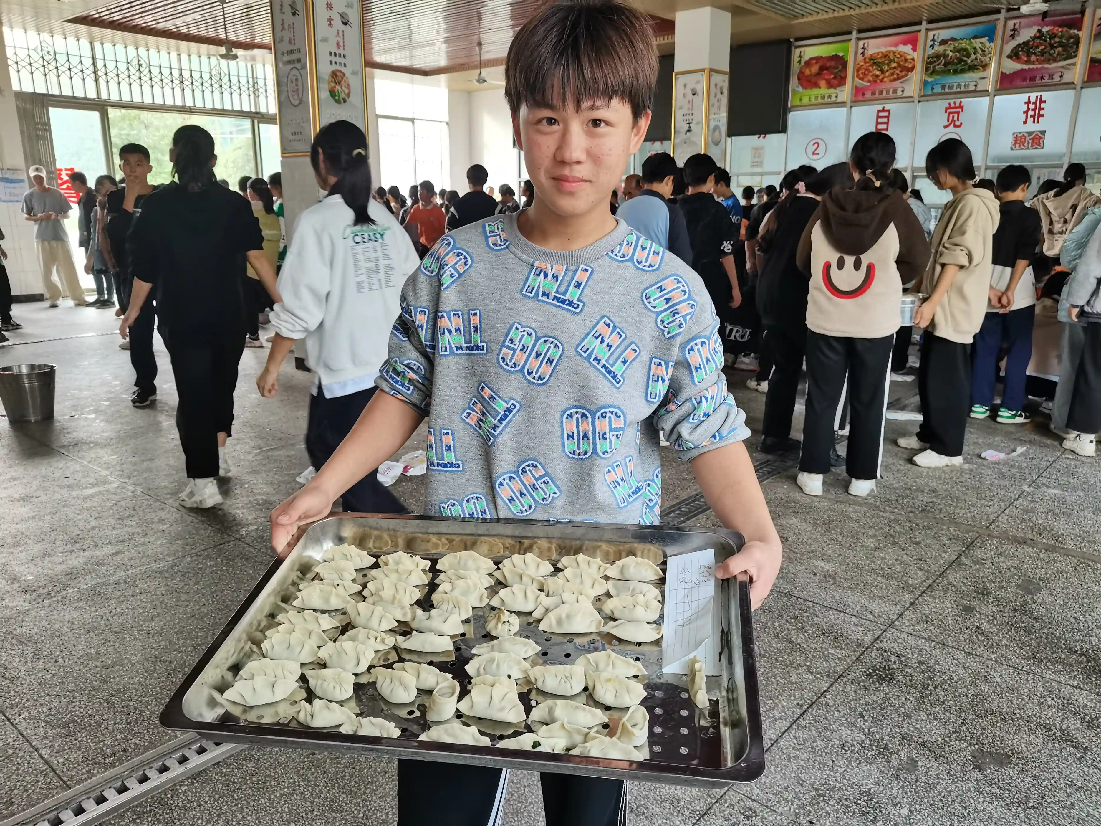 周末两天,学校安排上午半天上课,下午为文体、制作面食等活动。今日下午,为制作面食类小吃为主题劳动实践活动。各班级代表到食堂领取面食原料,在班主任和任科教师组织下有秩序、按流程操作实践。忙活起来,兴高采烈,师生们分工协作,有的揉面,有的做馅放,有的负责包饺子学生们制作过程热火朝天,喜笑颜开。一会儿工夫,只见方形铁盘上摆满了大家齐心协作、共同劳动的成果。