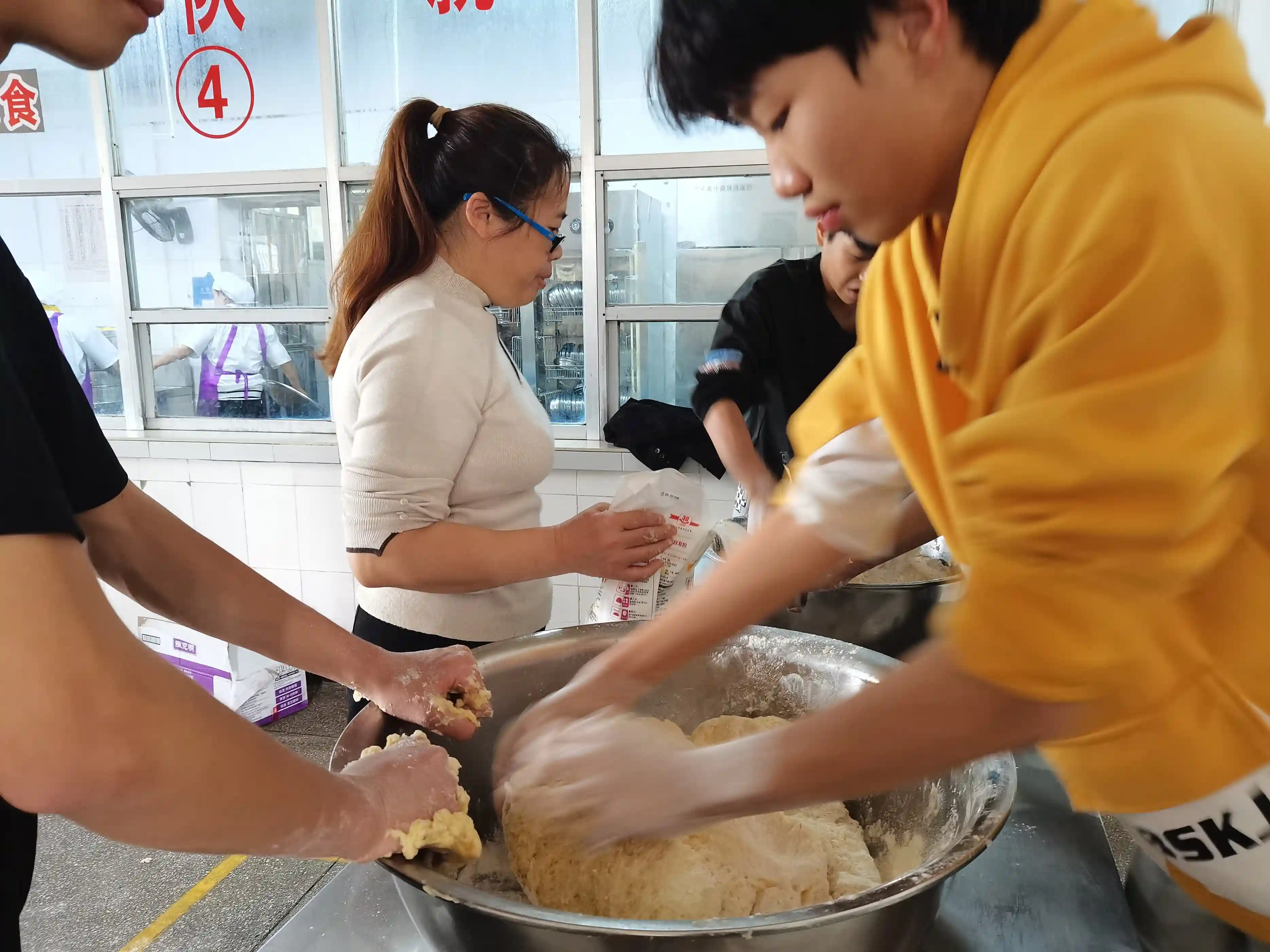 筑牢学校防控疫情铜墙铁壁,保障学校教学一方净土,认真落实疫情防控部门和教育局通知精神,周末假期(11月26日至27日),我校师生暂缓放假。为提高师生在校期间教学兴趣,度过愉快的周末,学校以教室和食堂等校园设施为劳动实践场所,在学生中开展制作面食糕点手动实践活动,为学生提供了一个劳动实践锻炼的平台,让学生在劳动过程中,不仅懂得劳动的艰辛,更知晓在集体团队中如何相互协作配合,加强了团队合作荣誉感,促进学生们身体健康,提升劳动情怀感。