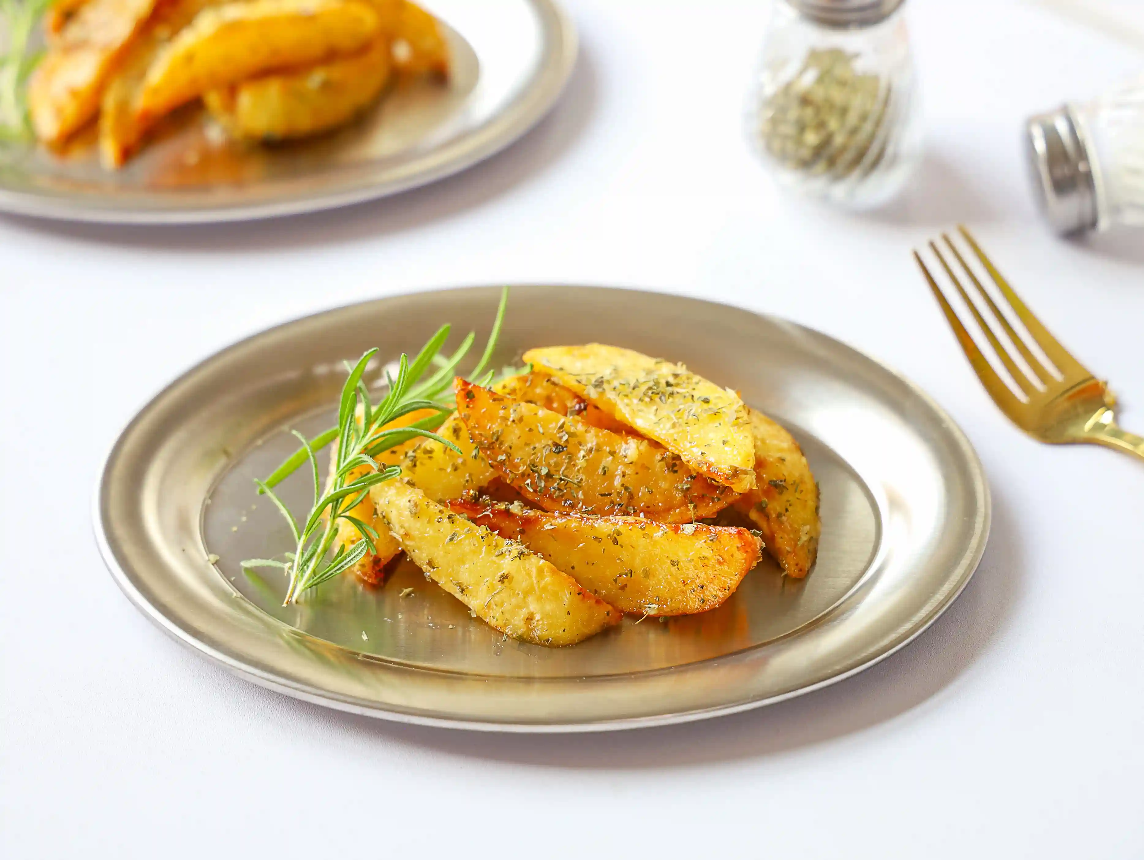 4.检查土豆底部有没有出现焦糖化,如果没有翻面再烤5分钟,你会得到焦香的脆皮!