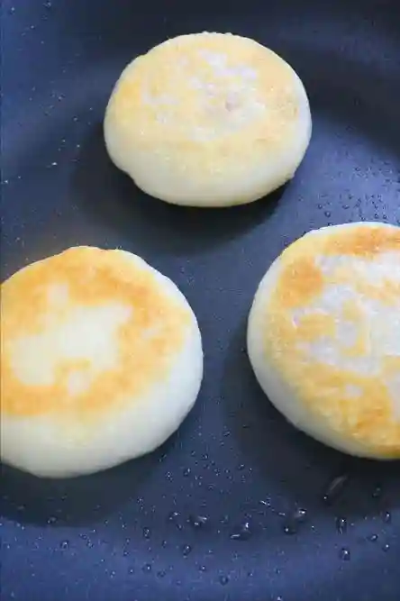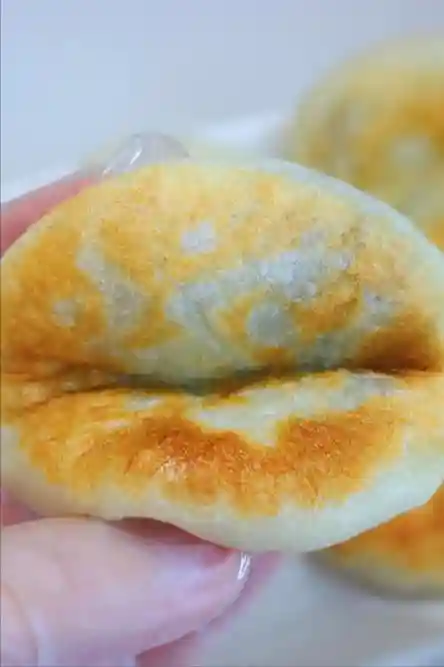 小饼上色变深个别时候还有一点点裂开的状态时,就可以翻个面继续烙制,再轻轻按压时发出酥脆声的时候就可以出锅静置一会冰,此时你就可以享用这美味的点心啦。