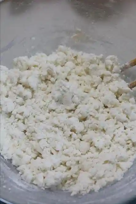 我们需要将莫伊粉和面粉混合均匀,将水慢慢加入,边加边搅拌,让粉和水充分混合在一起,使之不粘手。