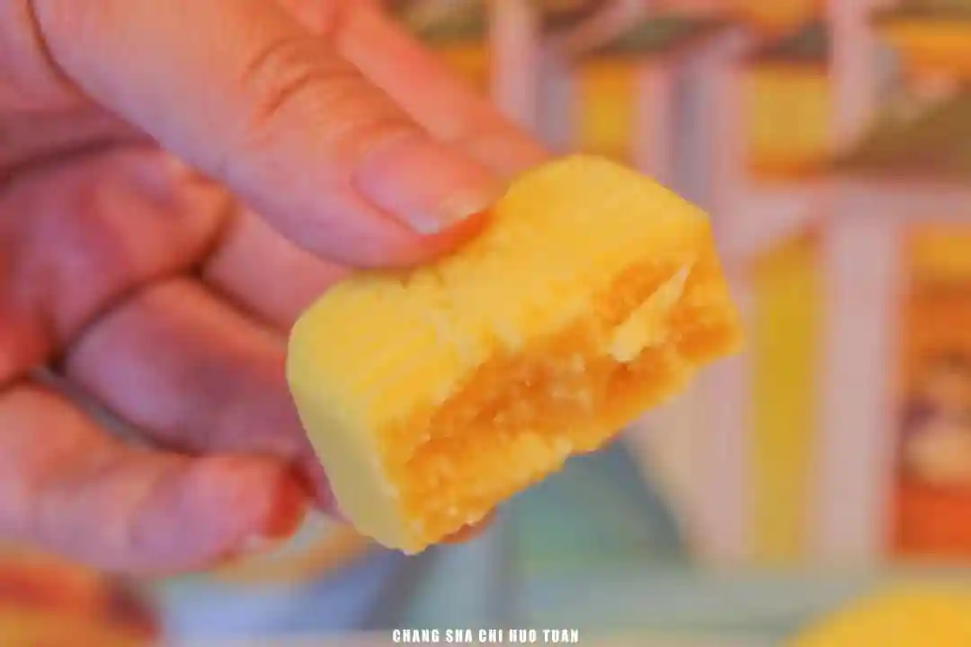 这个桂花蛋黄味真的是绝了,嫩黄的外表包裹着细腻咸香的蛋黄,轻轻一掰,食欲一下子就被勾起来了。
