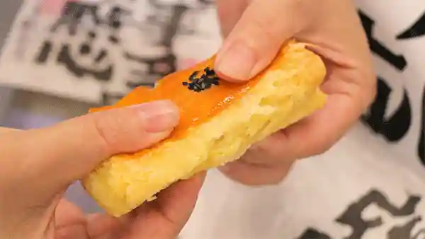 尝一口,带有淡淡桂花香味的外皮没有过分甜腻,内里的蛋黄又带给你沙沙的口感,迫不及待想吃下一块了!