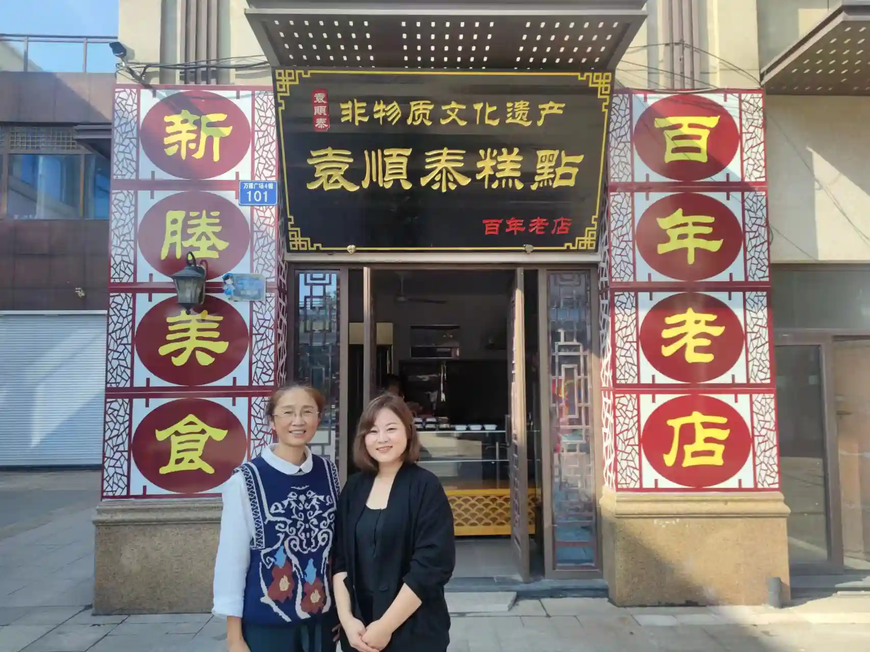 母亲袁庆芬原为新塍国营饮服店的店员,下辖的勤益点心店当时已是新塍的老字号,袁庆芬就在里面做糕点。母亲的娴熟技艺,母亲的长年历练,都为袁顺泰糕点店的重开打下了坚实的基础。退休后,袁庆芬成为袁顺泰糕点第四代传承人。沈丹露看到母亲的辛苦,2016年辞掉了旅游行业的工作开始帮助母亲打理这家老店,老店注入了新的活力,从此袁顺泰糕点风生水起。