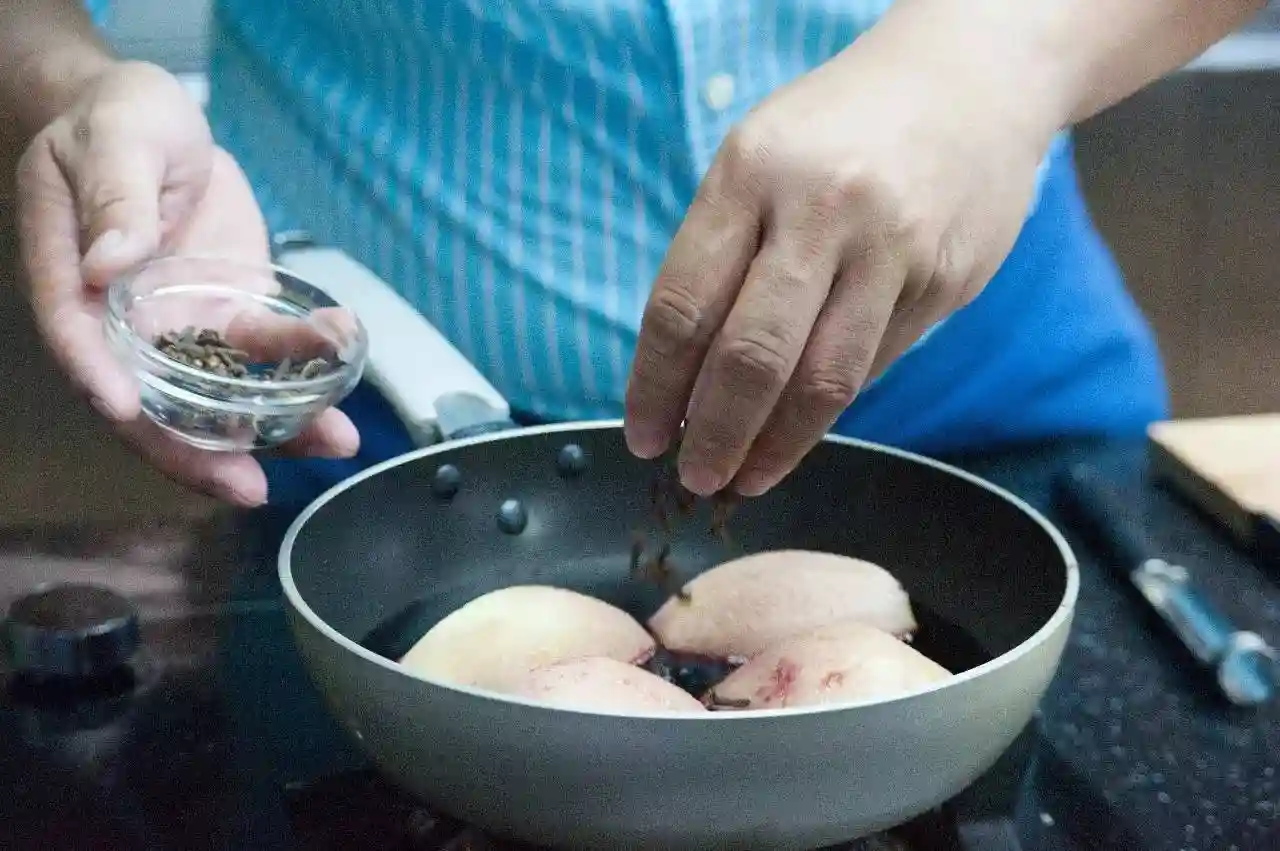 在锅中加入少许豆蔻粉。