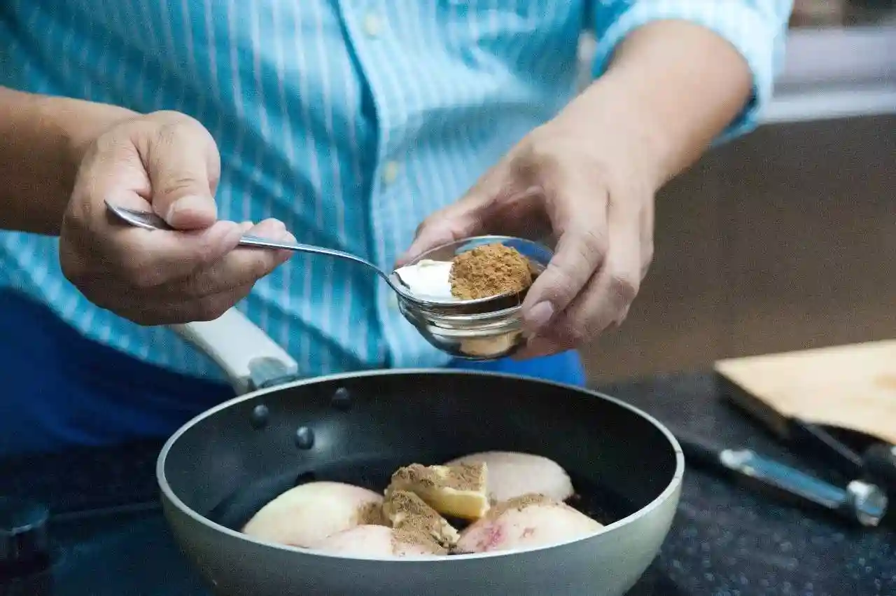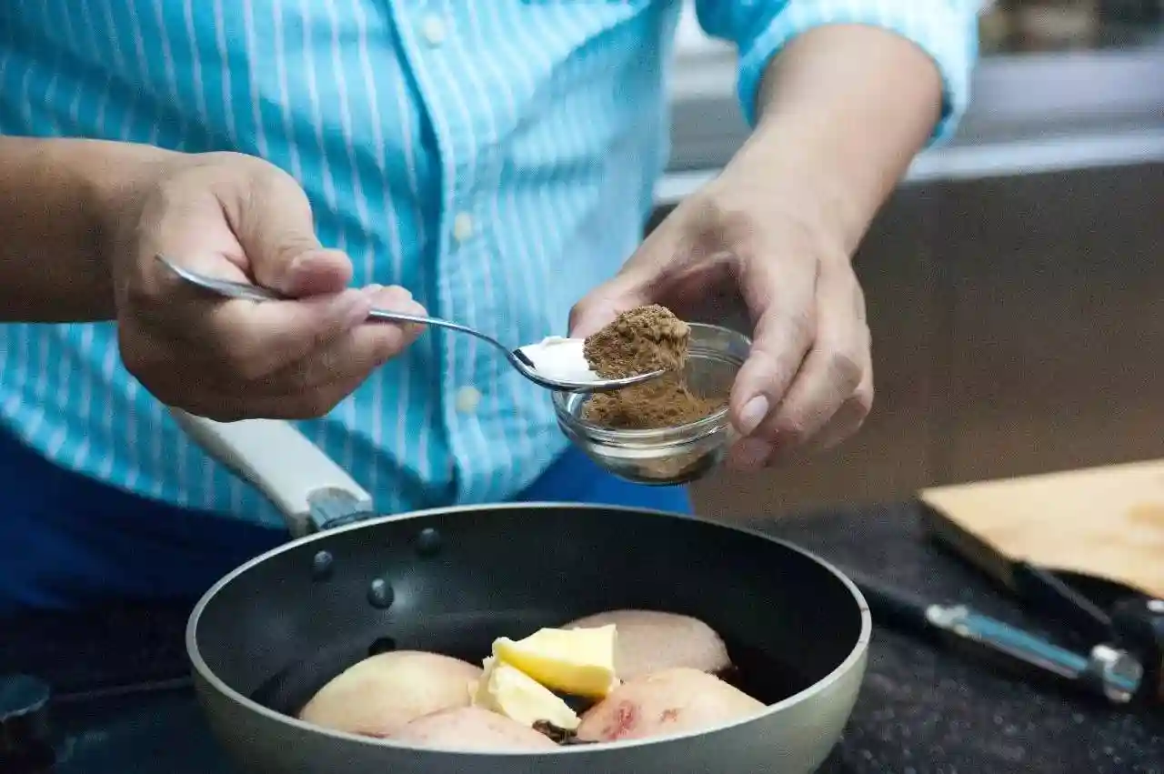 在锅中加入少许肉桂粉。
