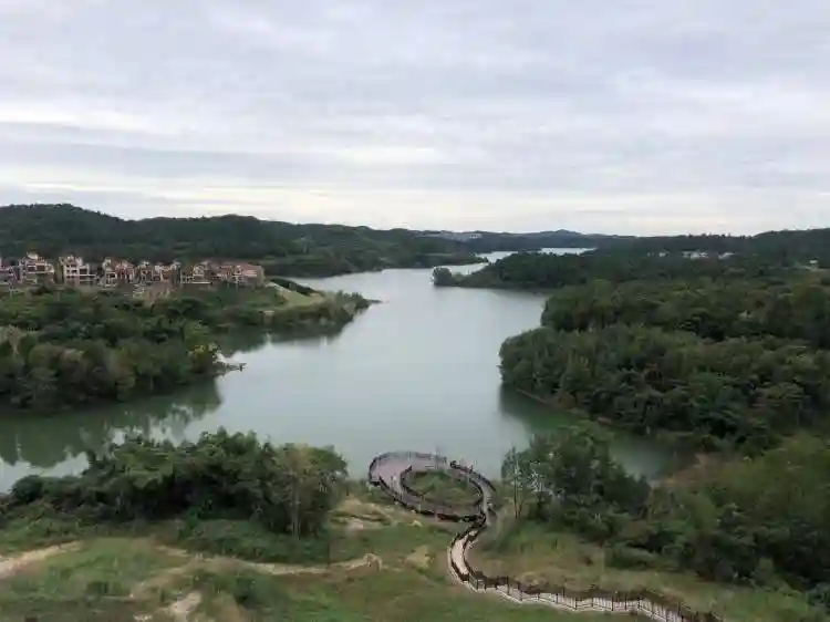 酒店所在的仙海水利风景区,由46座半岛组成,森林覆盖率达90%。优美的景色早已成了成都等周边城市短途游的热门之选。