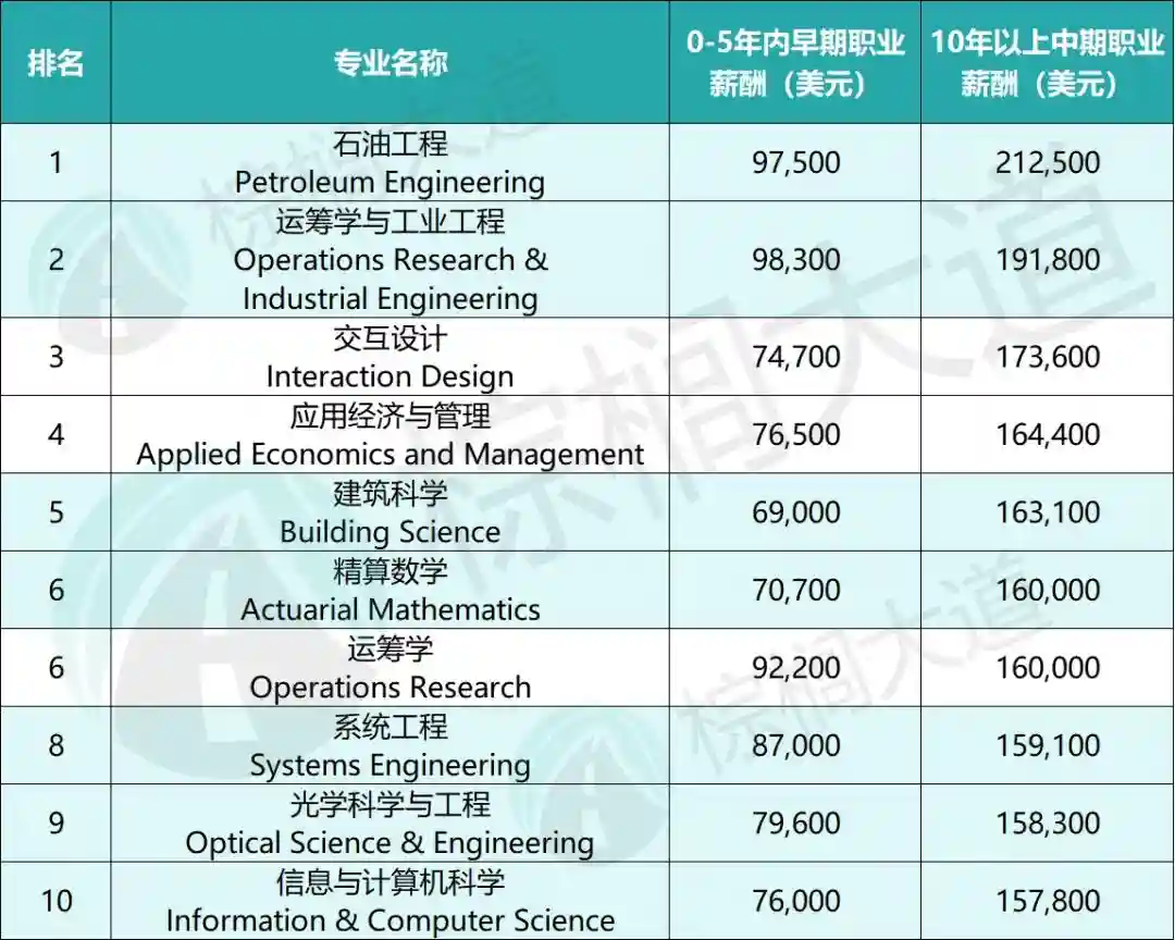 另一方面,美本理工科专业普遍“钱景”优秀,美国薪酬网站Payscale最新发布的【薪资最高的大学本科专业排行榜】,Top10里有7个都是理工和CS类专业!