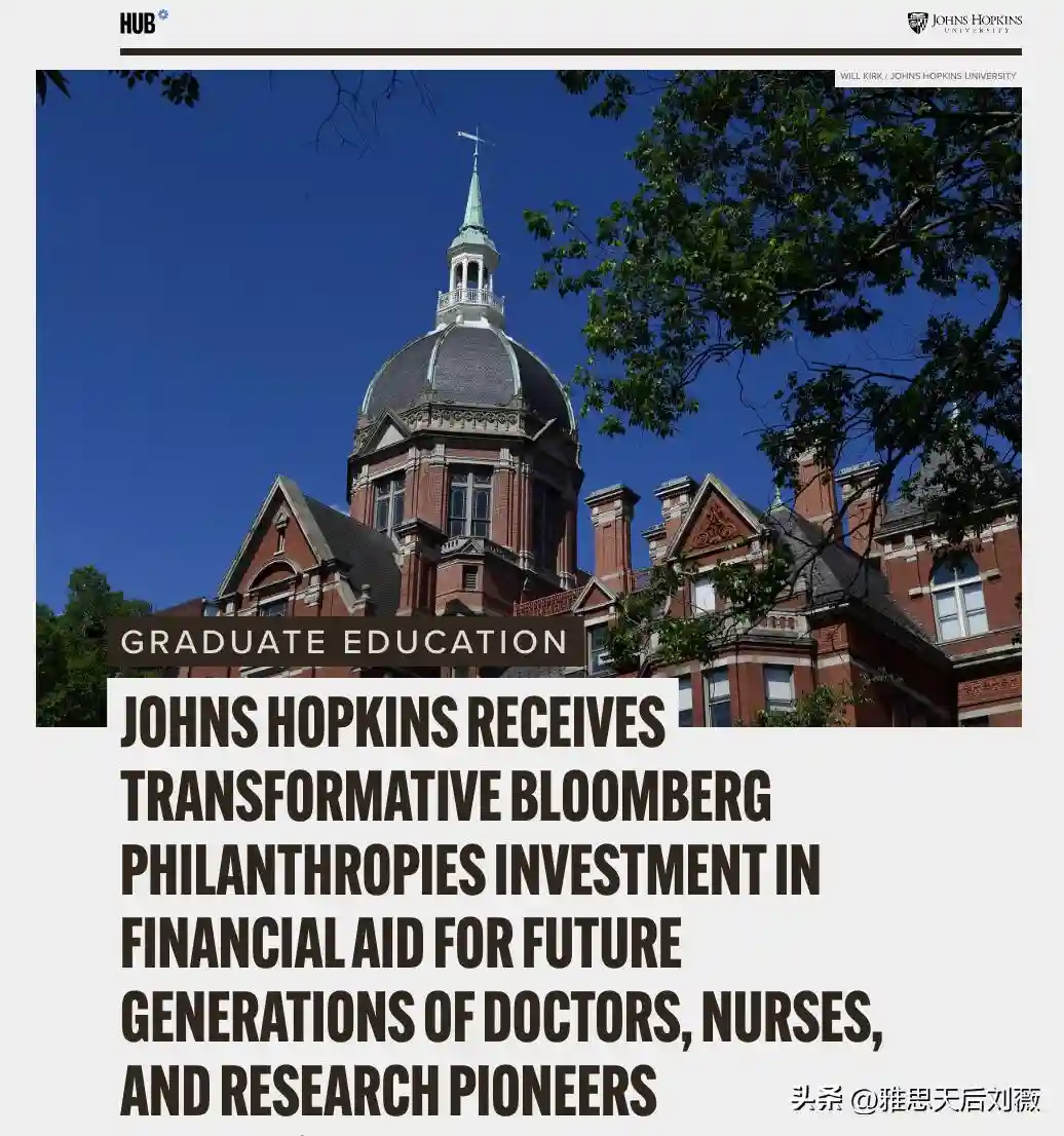 这一善举,使约翰霍普金斯大学(JohnsHopkinsUniversity,以下简称JHU)大多数医学院学生及护理、公共卫生等研究生能享受免费或更多经济援助,助力他们追梦医学领域。