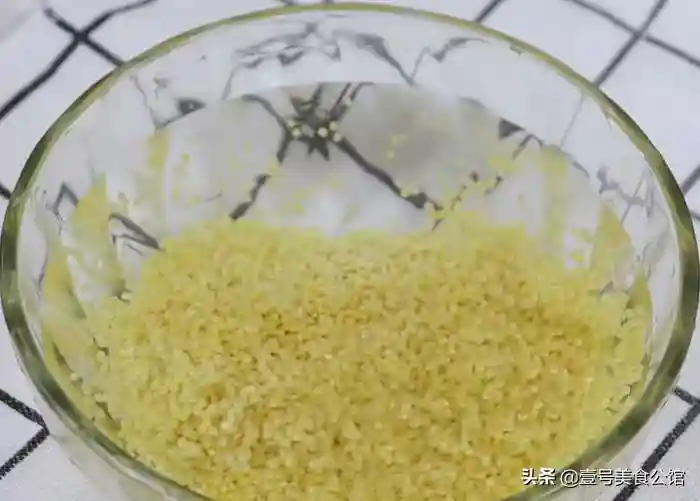 第三步:随后我们准备一个玻璃容器,在容器的周边都刷上一层食用油,这样可以让之后的小米糕脱模更加方便。