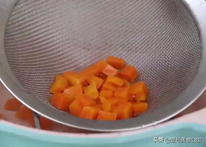 第一步:把小米用清水提前浸泡两小时,胡萝卜去皮切丁(切片也行),然后放在沸水中煮3分钟取出备用。