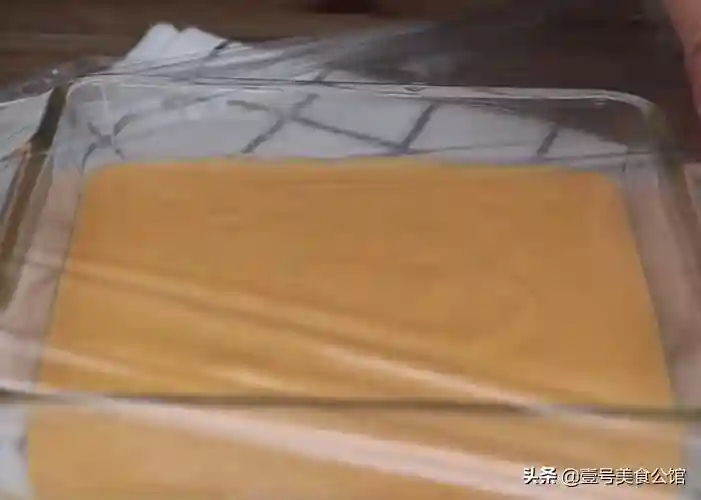 第五步:随后我们在容器上面盖上一层保鲜膜,适当戳几个小孔。这样做的目的可以让蒸汽水不落入容器中,让成品更加的美观。