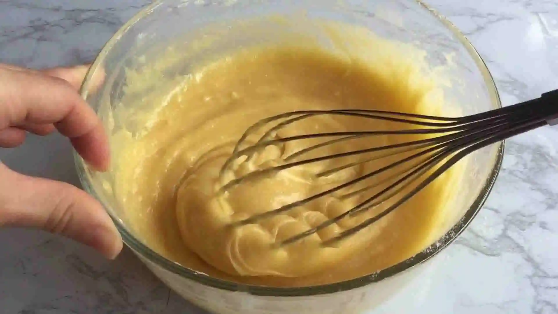 再加入牛奶搅拌均匀,分两次加入玉米油并搅拌均匀。