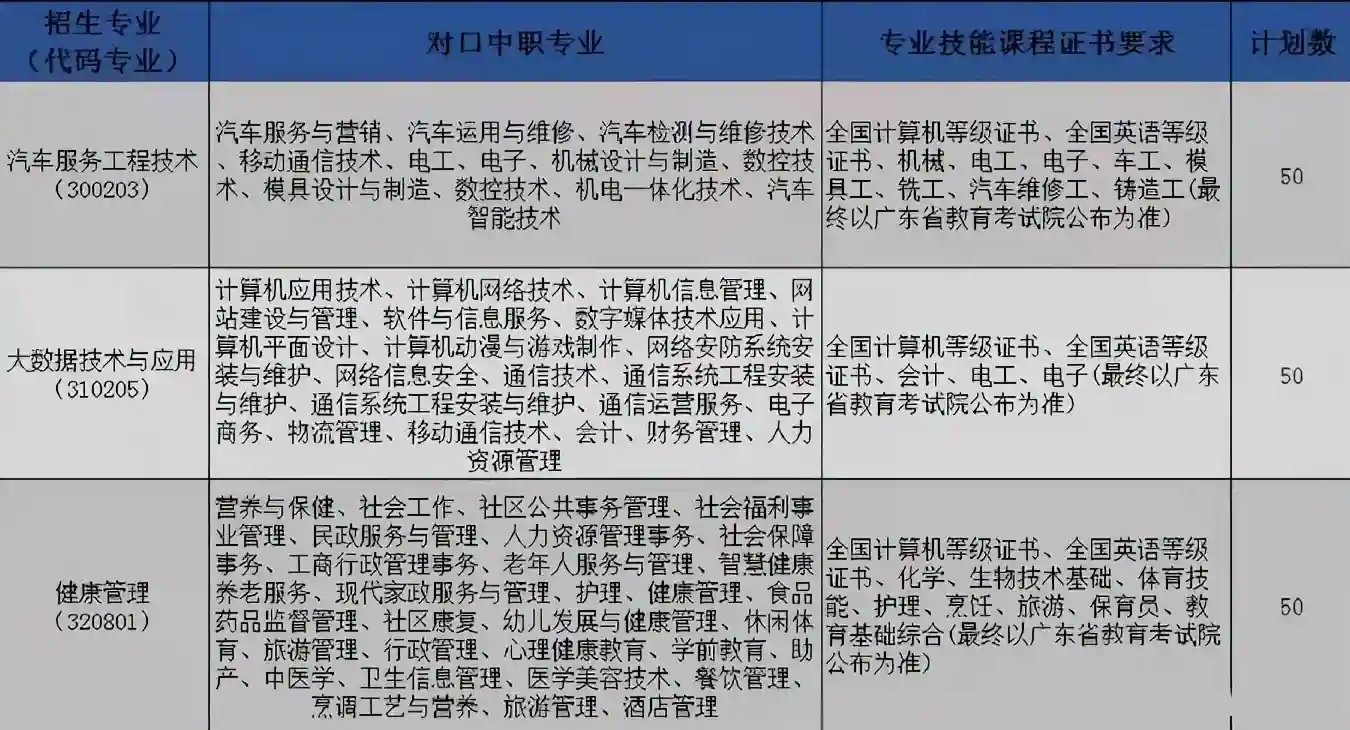 证书要求:广东省教育考试院颁发的护理、化学、生物技术基础专业技能课程证书,或卫生行政主管部门颁发的护士执业证书(含护士执业资格考试成绩合格证明)。考生须获得上述之一证书(证明)。