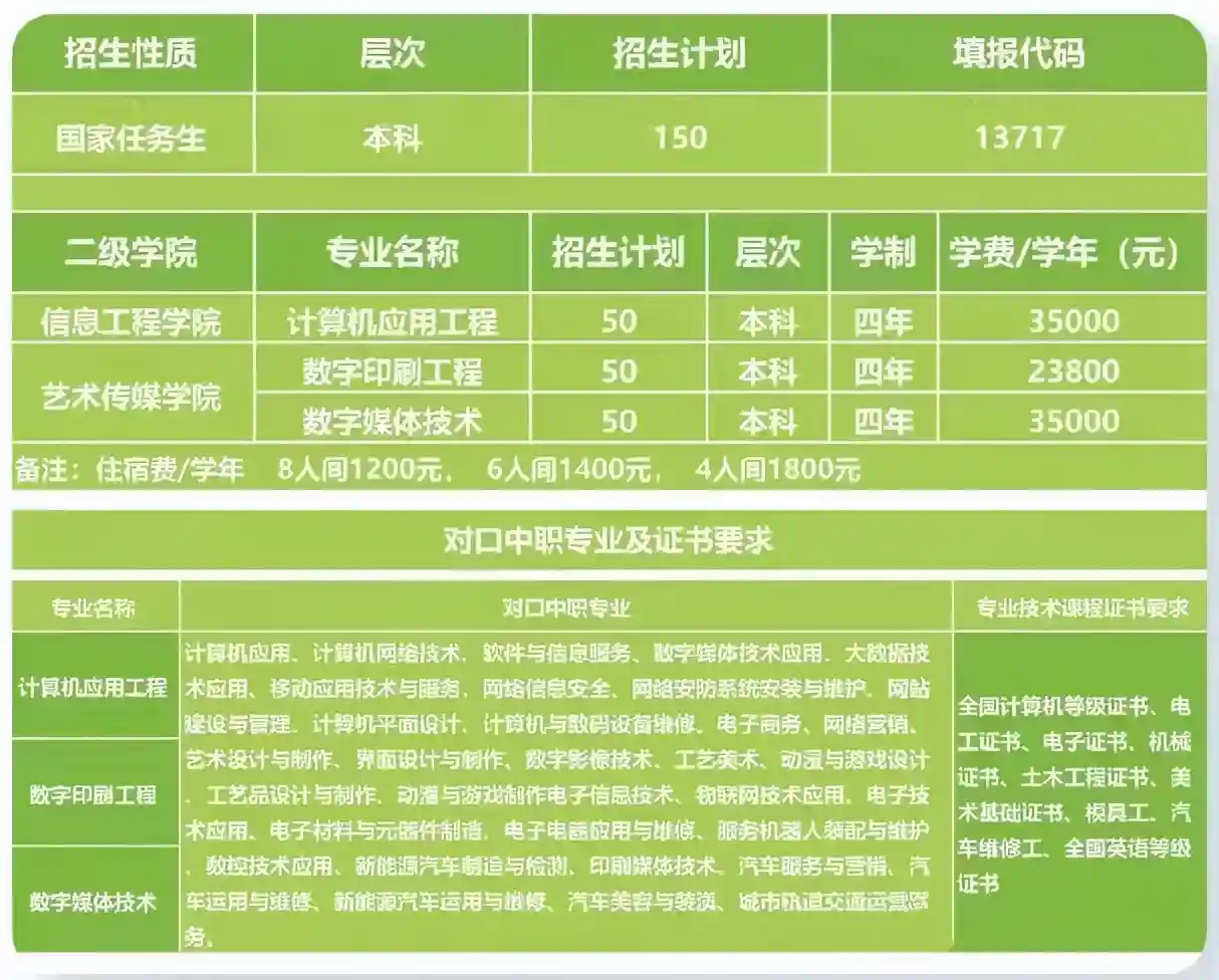 备注:烹饪与营养教育专业不招色盲、色弱考生。