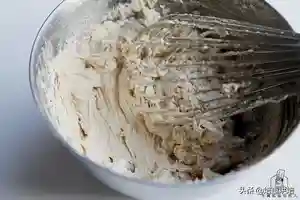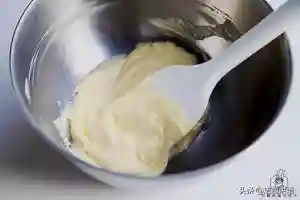 3.每一次搅拌均匀后再加入下一次,乳化要完全。记得鸡蛋是常温的。如果这步水油分离了,多半是因为鸡蛋或者黄油太凉了,打发的盆下垫一块热毛巾,把黄油加下温,就可以打顺滑了,不影响口感。