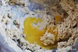 2.鸡蛋分三次加入,搅拌均匀。