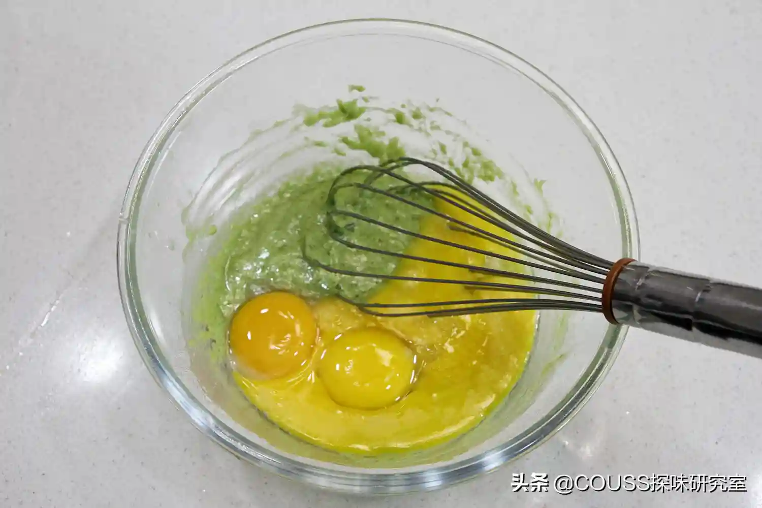「4」加入蛋黄,搅拌均匀后将面糊过筛一遍,盖好备用;